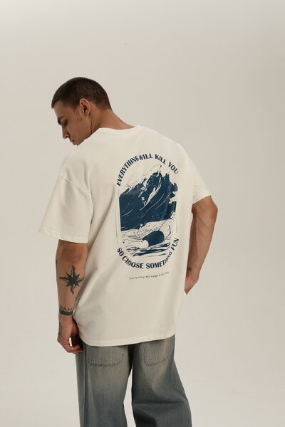 Oversized T-shirt made of French terry with a print on the back. It’s pleasant to the body and relaxed fit, so you could feel as comfortable as possible in any situation.