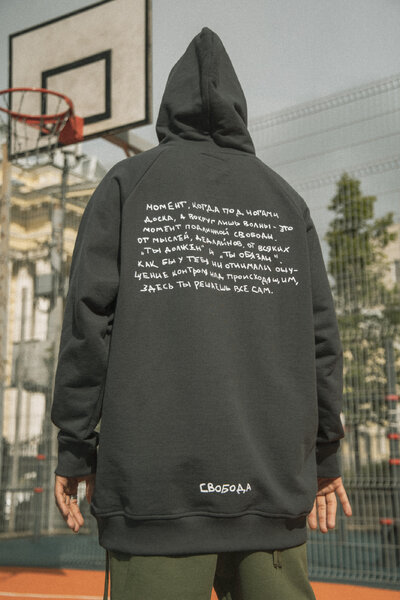 The oversize elongated hoodie "Freedom" reflects the feelings we experience when we stand on the board. A moment of true freedom from everything is priceless. To make it comfortable for you in any situation, we created a hoodie from thick premium footer. And may there be even more boards and these moments in your life:)